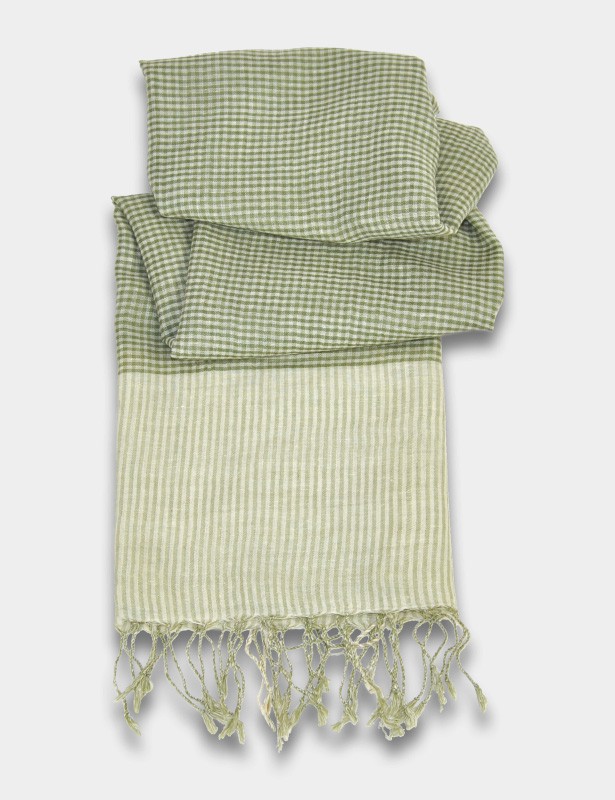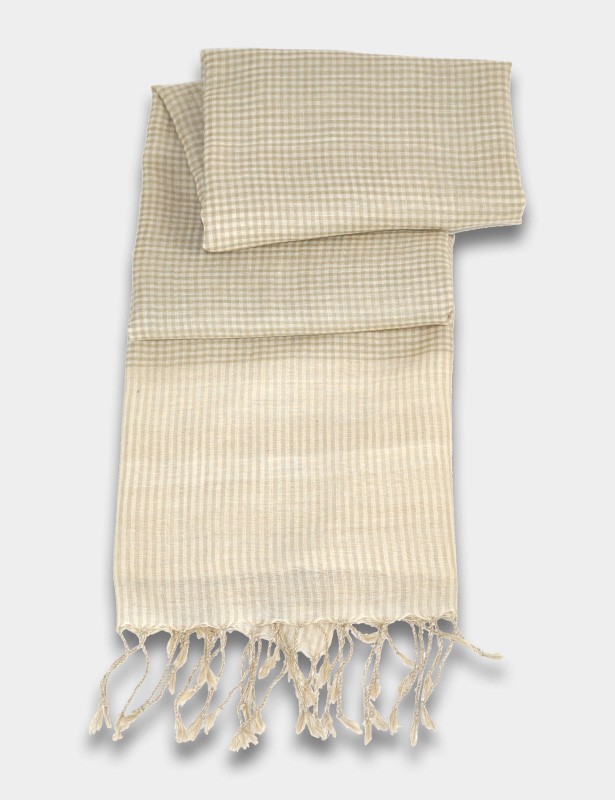 Modischer Schal im Vichykaro-Design und schmalen Streifen im Abschluss.